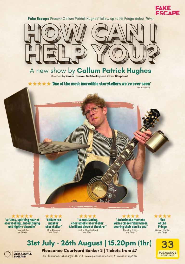 How Can I Help You? by Callum Patrick Hughes was co-directed and produced by David Shopland andpremiered at the Edinburgh Fringe in 2024 in association with Pleasance.