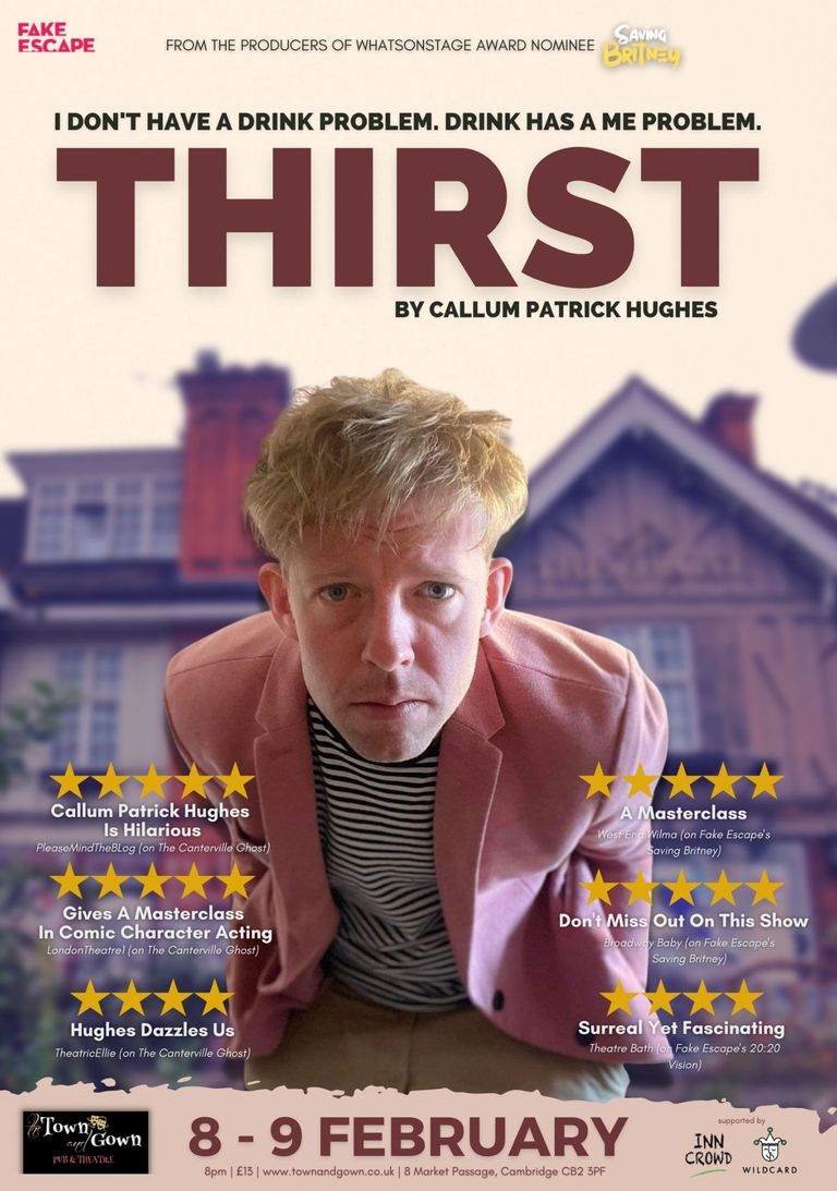 Thirst by Callum Patrick Hughes was co-directed and produced by David Shopland and toured the UK in 2023 before playing for a month at the Edinburgh Festival, where it won several awards including Mervyn Stutter's Pick of The Fringe.